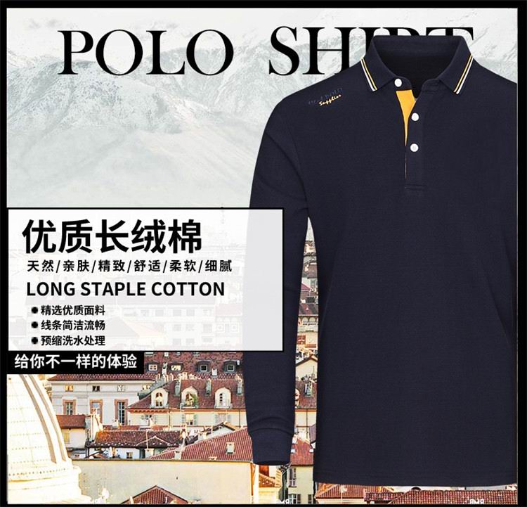 Men's long sleeved lapel T-shirt cotton embroidery POLO shirt Paul has a tie collar Spring and Autum
