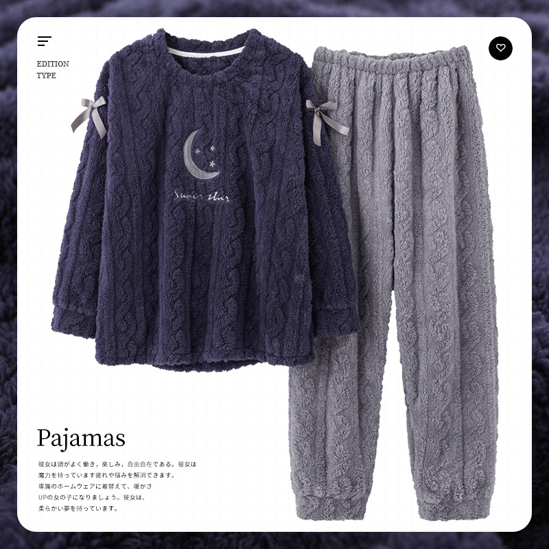 Women's flannel pajamas winter suit plush thickened Korean students' cute cartoon coral velvet home