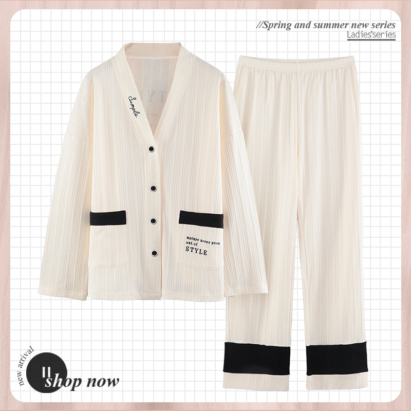 Spring and autumn pajamas women's kimono cardigan long sleeved trousers suit loose women can wear ho